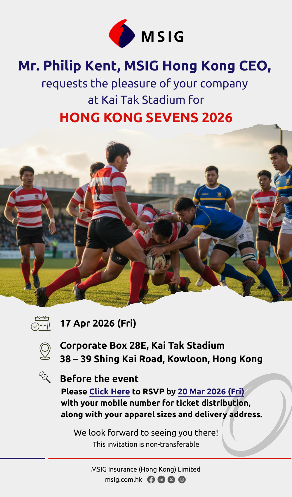 The provision of the hyperlink does not constitute endorsement, approval, warranty, or representation, express or implied, by MSIG Insurance (Hong Kong) Limited (“MSIG”) of any third party, or of the hyperlinked content, products, services, or information contained or available therein.